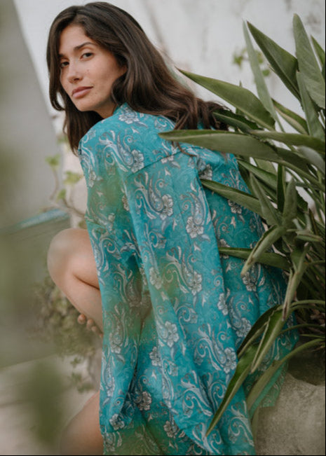Enjoy the comfort of the oversized line with the uniqueness of the print.